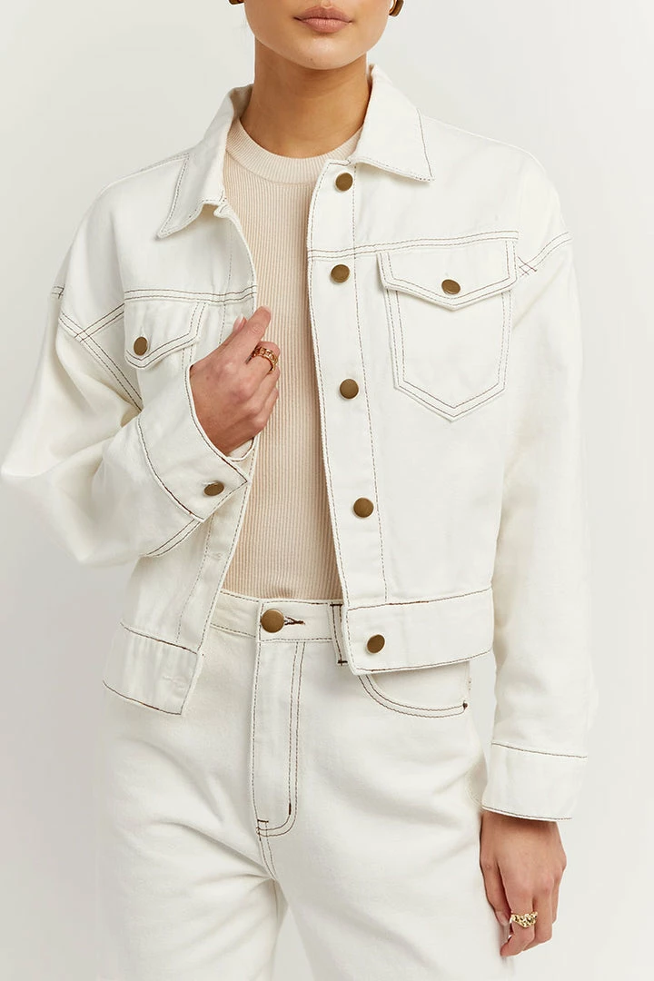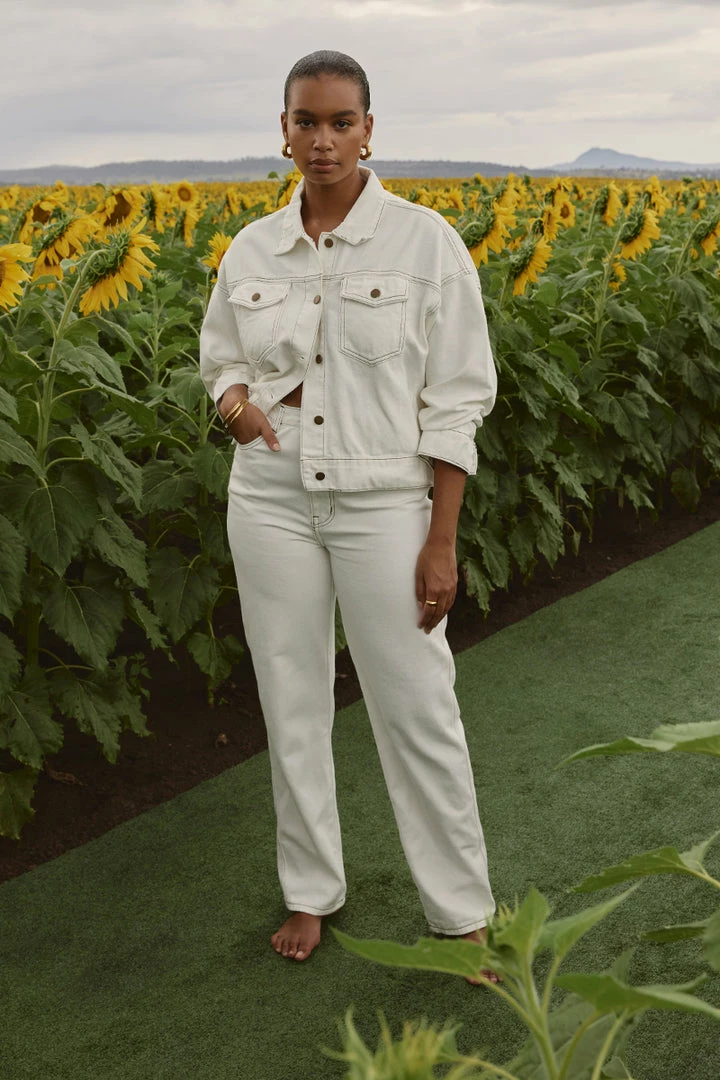 - Off whiteย rigidย denim fabrication