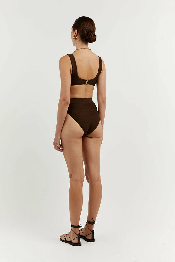 - Chocolate brown recycled REPREVE ribbed fabrication