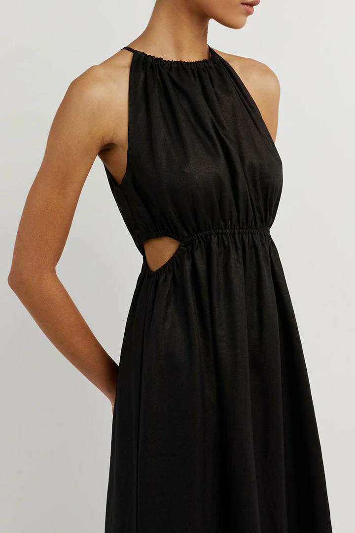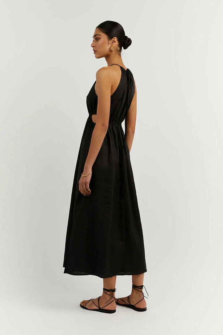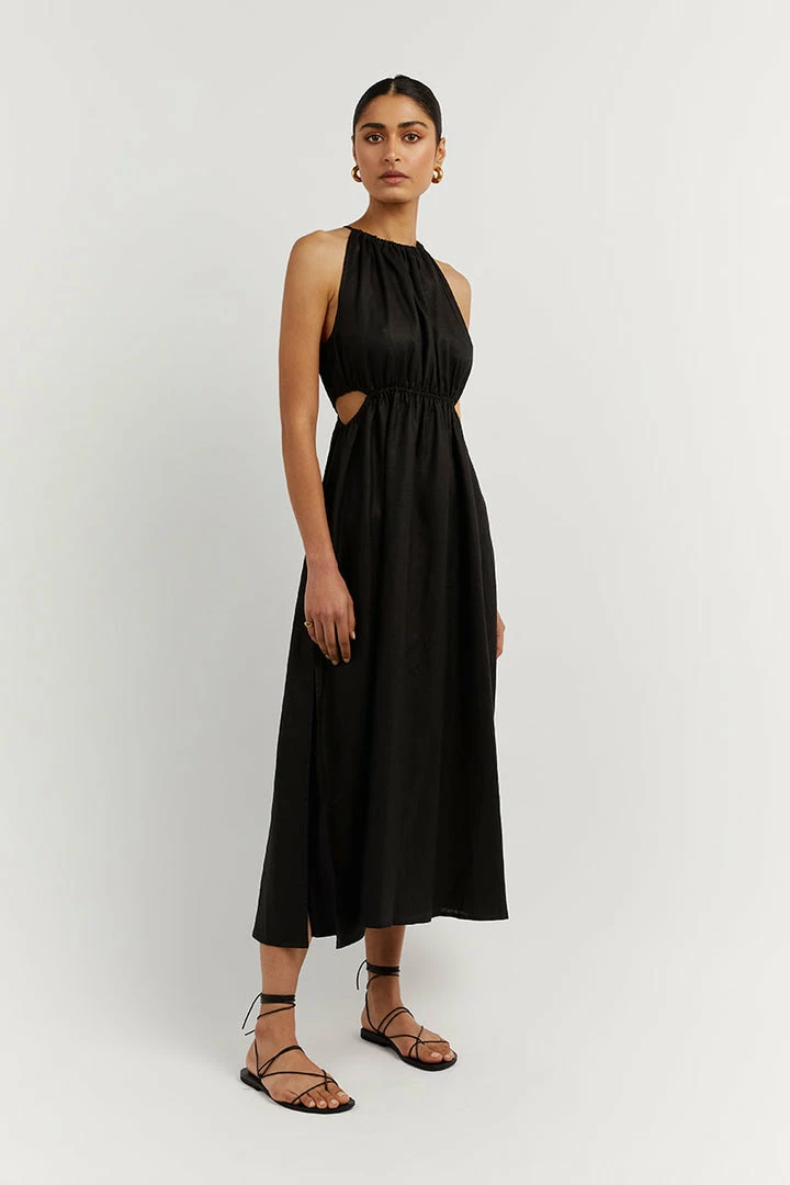 Outlet โญ DISSH Boutiques BONNIE BLACK LINEN MIDI ๐ DRESS โจ