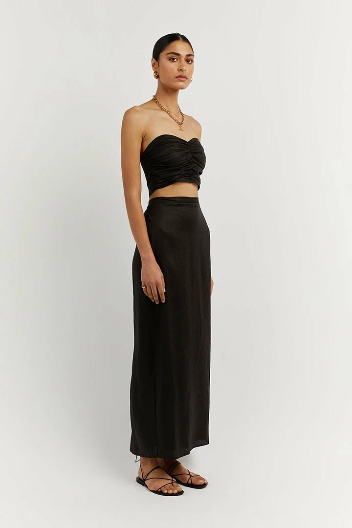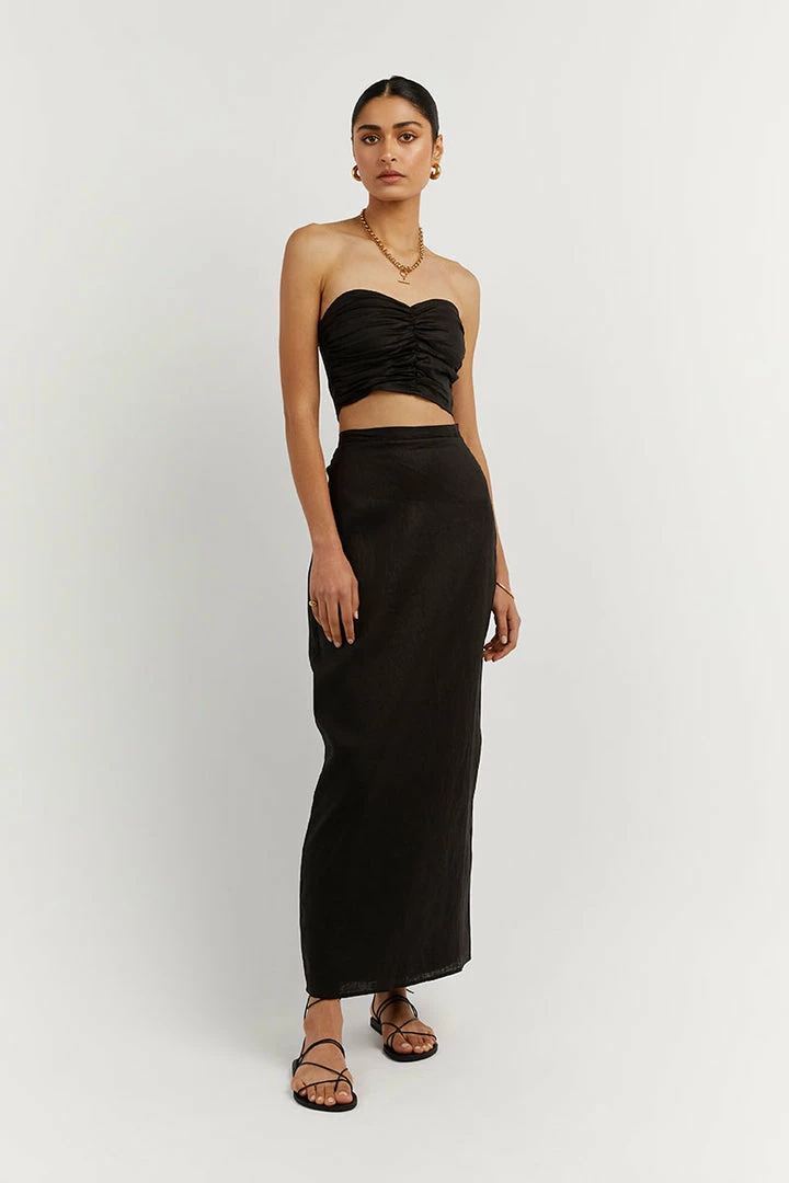 - Black 100% linen fabrication