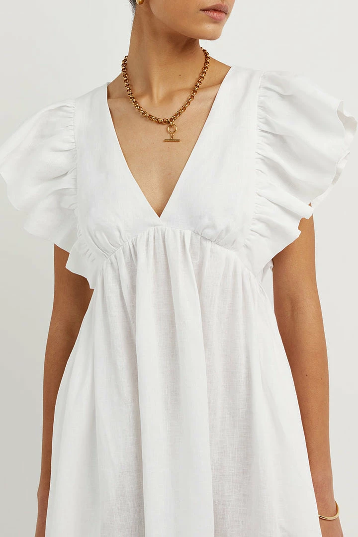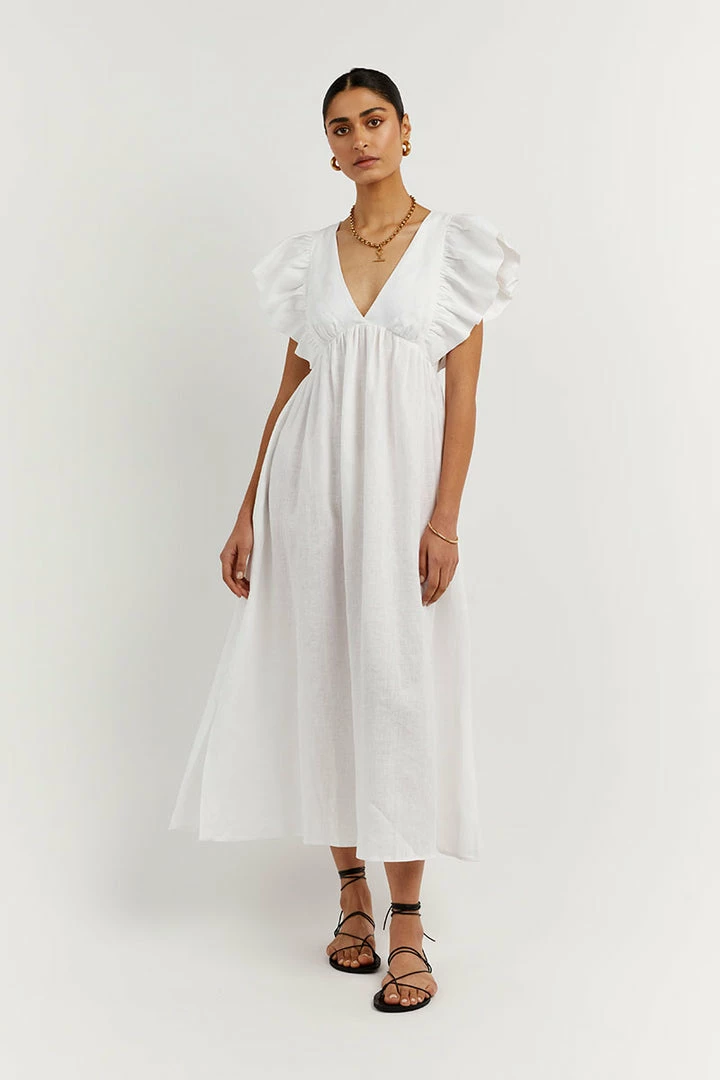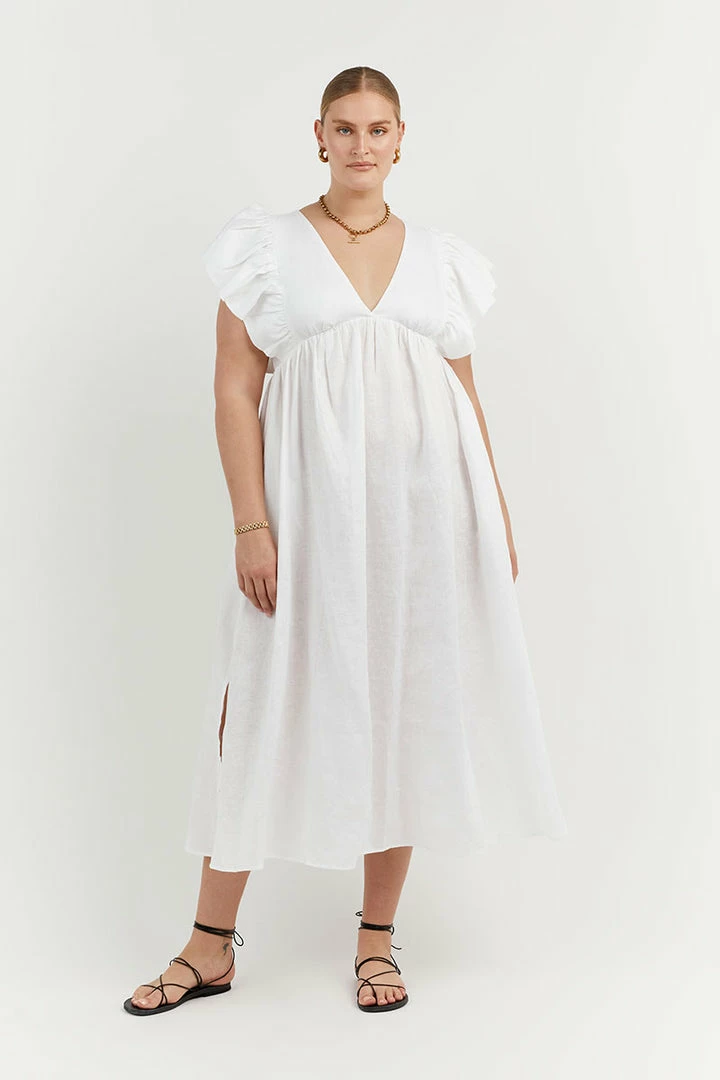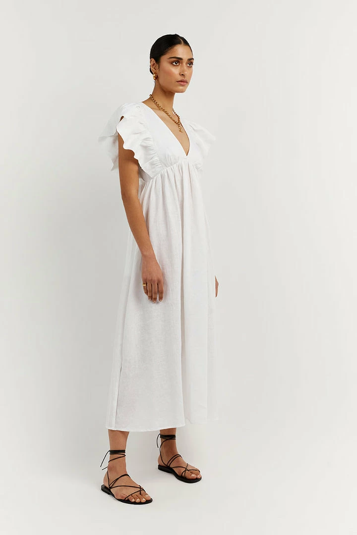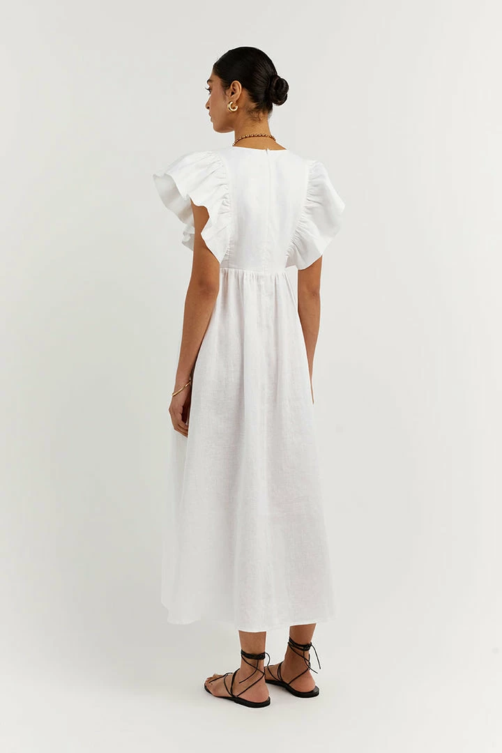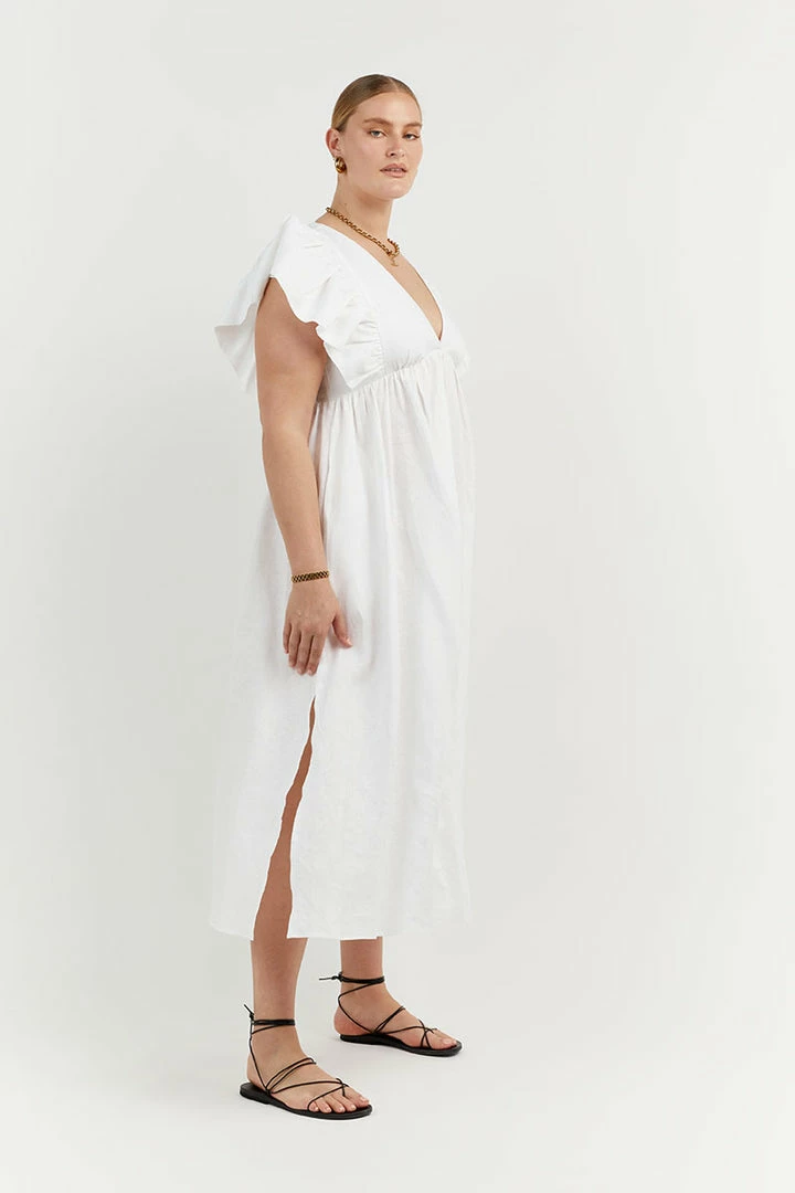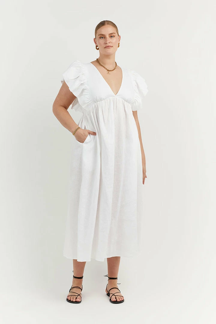 Best Sale ๐ DISSH Boutiques BONNIE WHITE FRILLED MIDI ๐ DRESS CLOTHING โญ