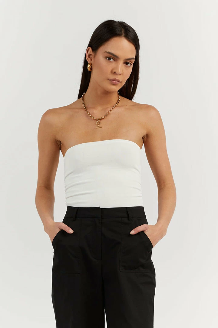 Promo ⌛ DISSH Boutiques CARRIE OFF WHITE BANDEAU KNIT TOP ❤️