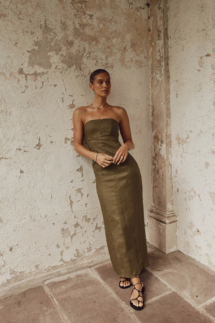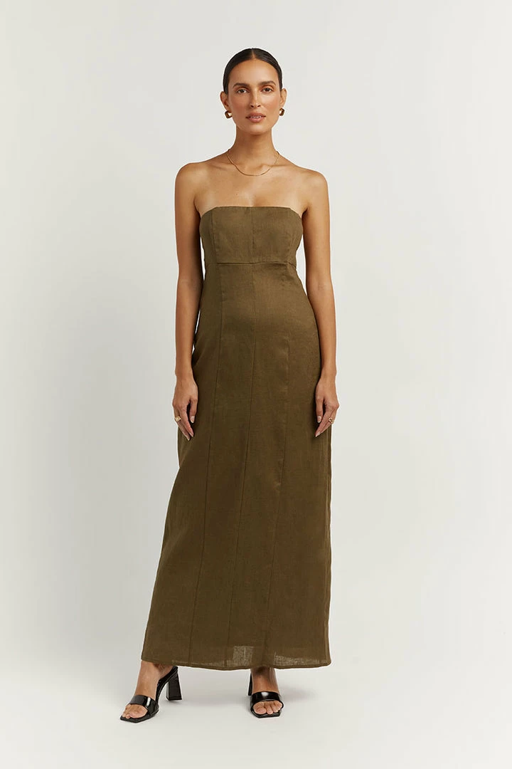 Cheap ๐ DISSH Boutiques CLOTHING ANDERSON OLIVE LINEN MIDI ๐ DRESS ๐