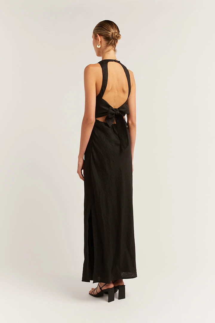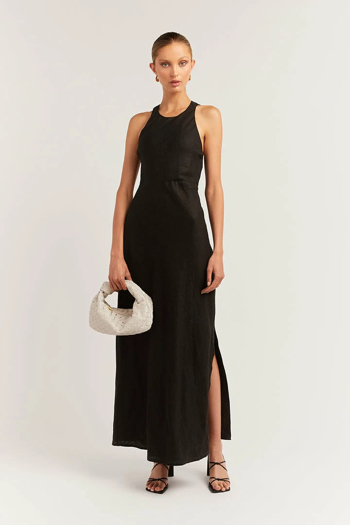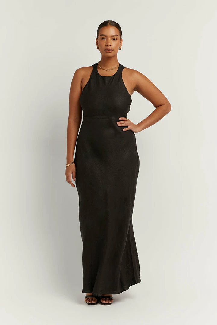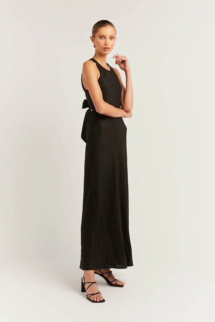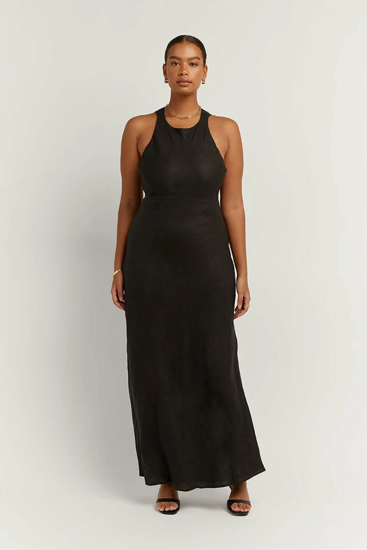 Promo ๐ DISSH Boutiques CLOTHING ANDREA BLACK LINEN MIDI ๐ DRESS ๐