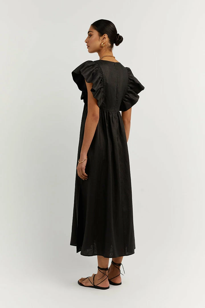 Wholesale ๐ DISSH Boutiques CLOTHING BONNIE BLACK FRILL MIDI ๐ DRESS ๐