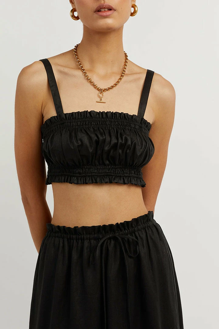 - Black 100% linen fabrication