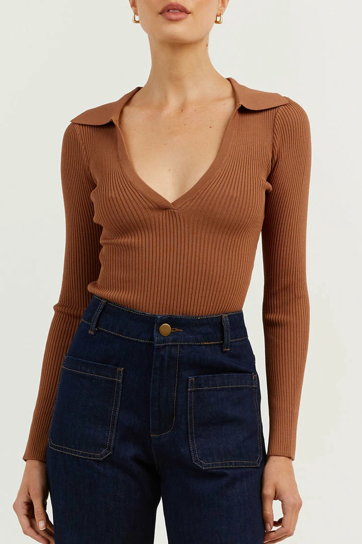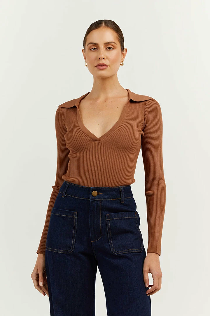 Top 10 โ DISSH Boutiques CLOTHING FENTON MOCHA COLLARED SLEEVED TOP ๐