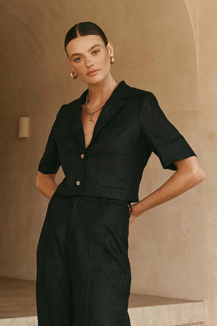 Cheap ๐ DISSH Boutiques CLOTHING LOGAN BLACK LINEN CROPPED ๐ SHIRT ๐