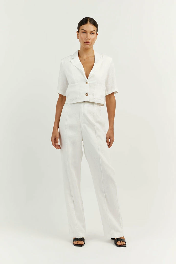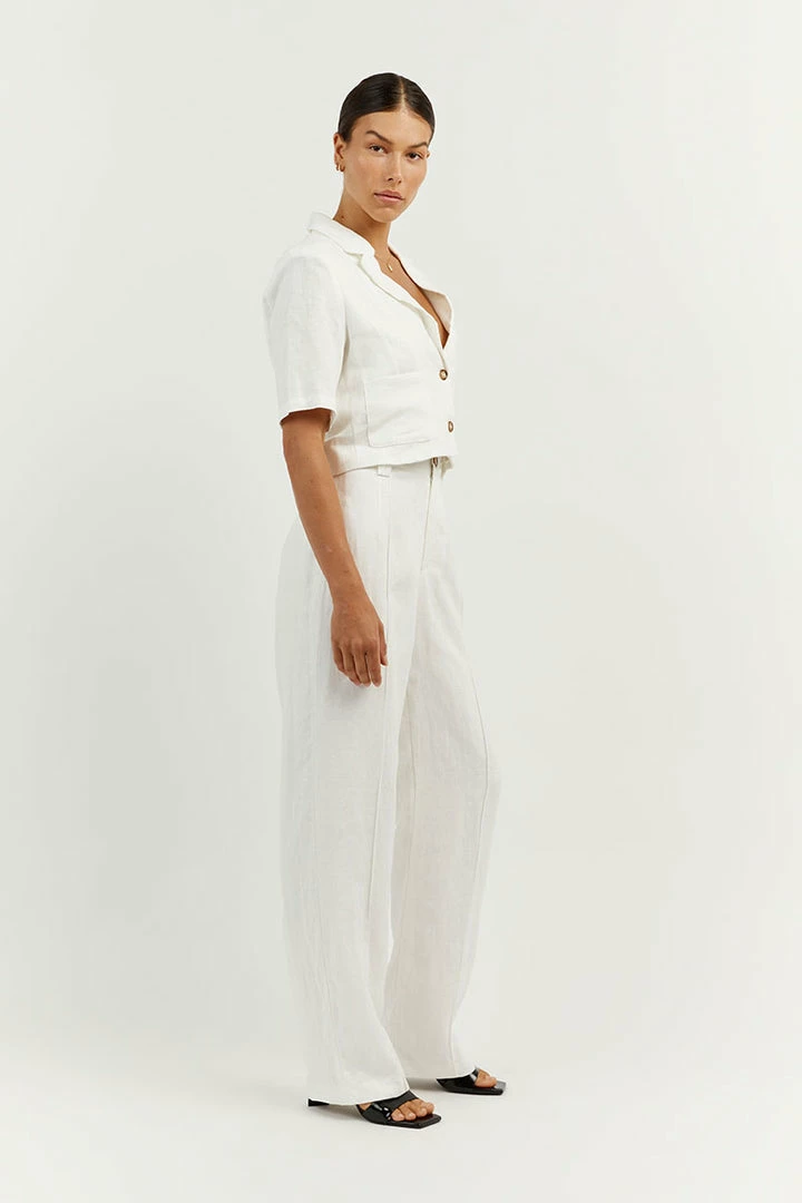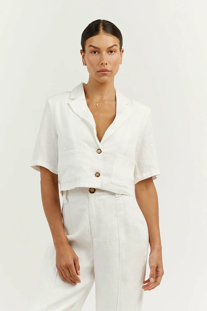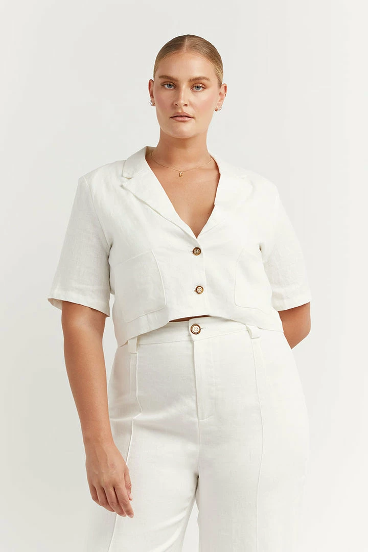 Best Sale ๐ DISSH Boutiques CLOTHING LOGAN OFF WHITE LINEN CROPPED ๐ SHIRT ๐