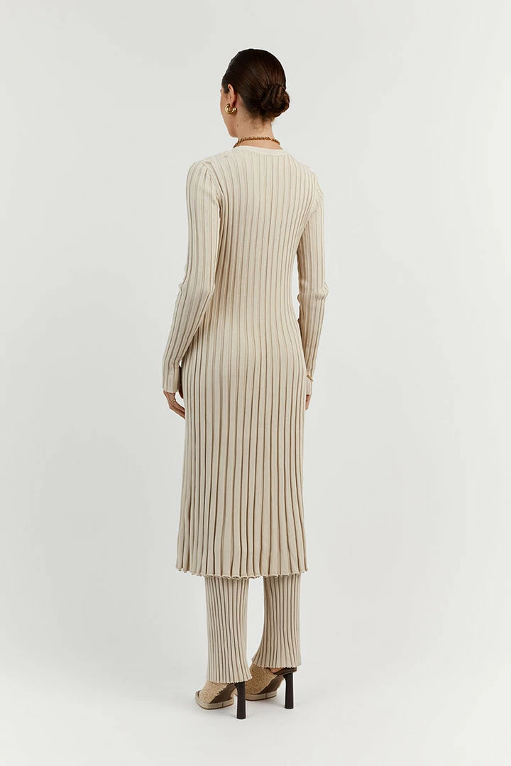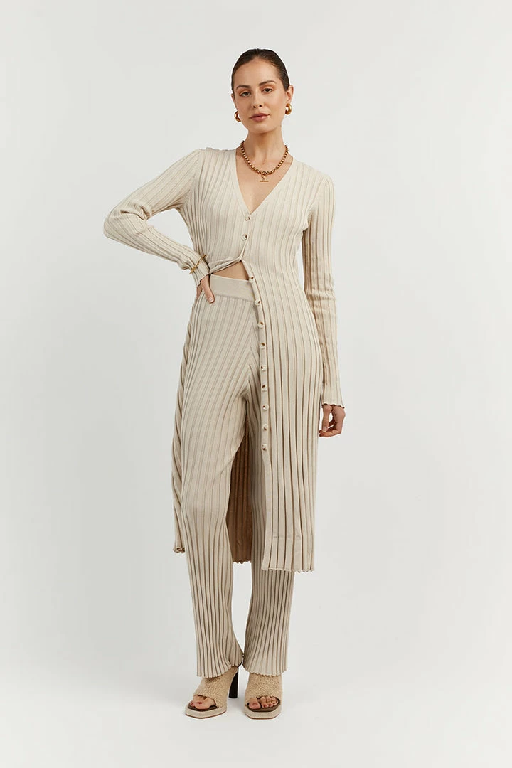 - Stone beige ribbed knit fabrication