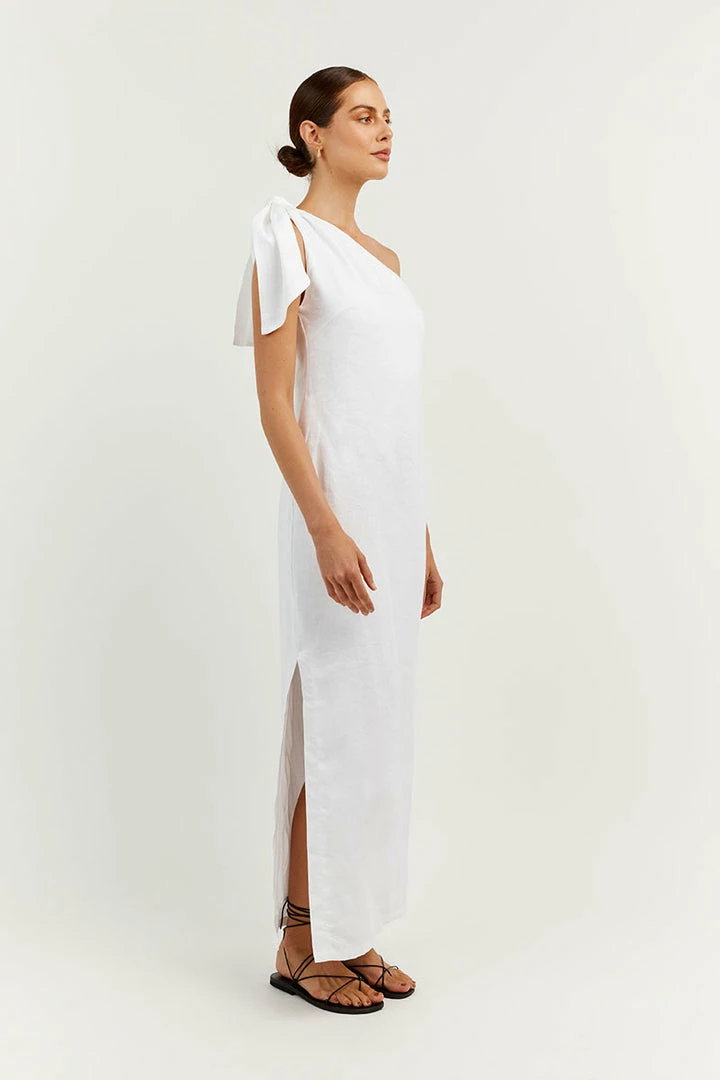 New ๐งจ DISSH Boutiques CLOTHING MACCA WHITE LINEN MIDI ๐ DRESS ๐