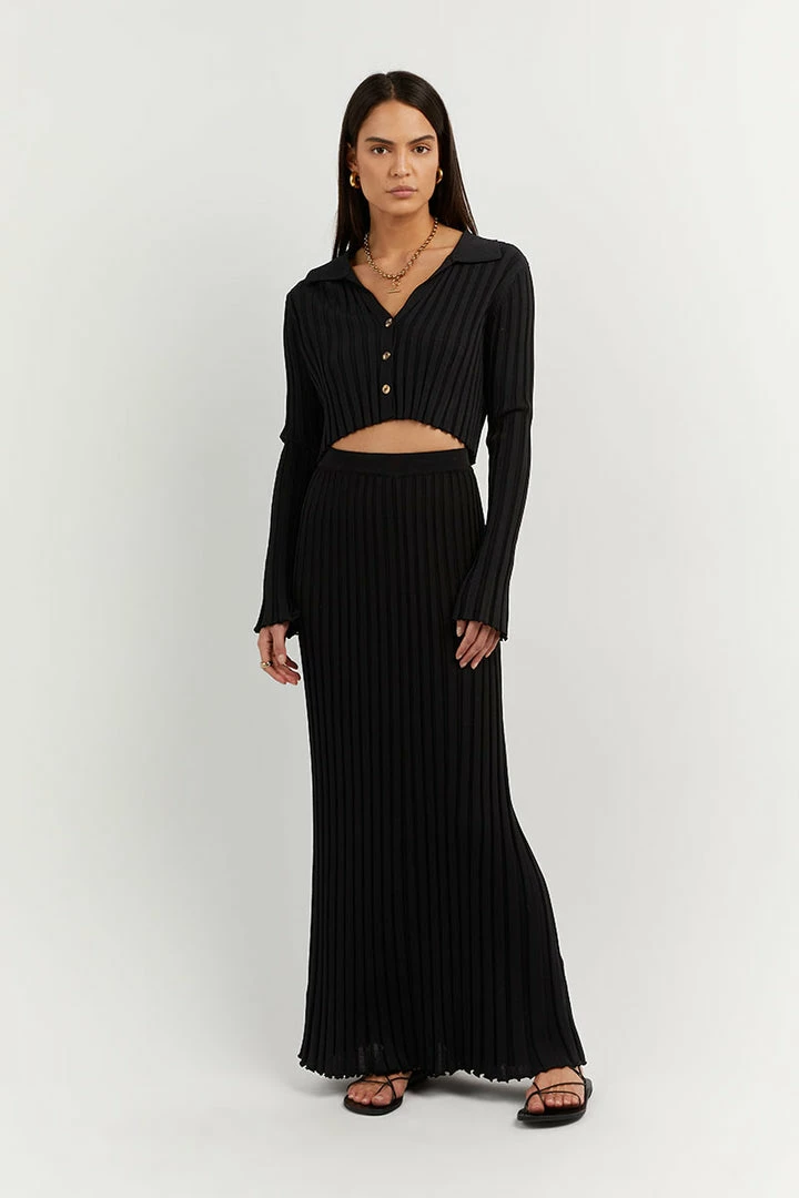Hot Sale ๐ DISSH Boutiques CLOTHING OLLIE BLACK RIB KNIT MIDI ๐ SKIRT โ