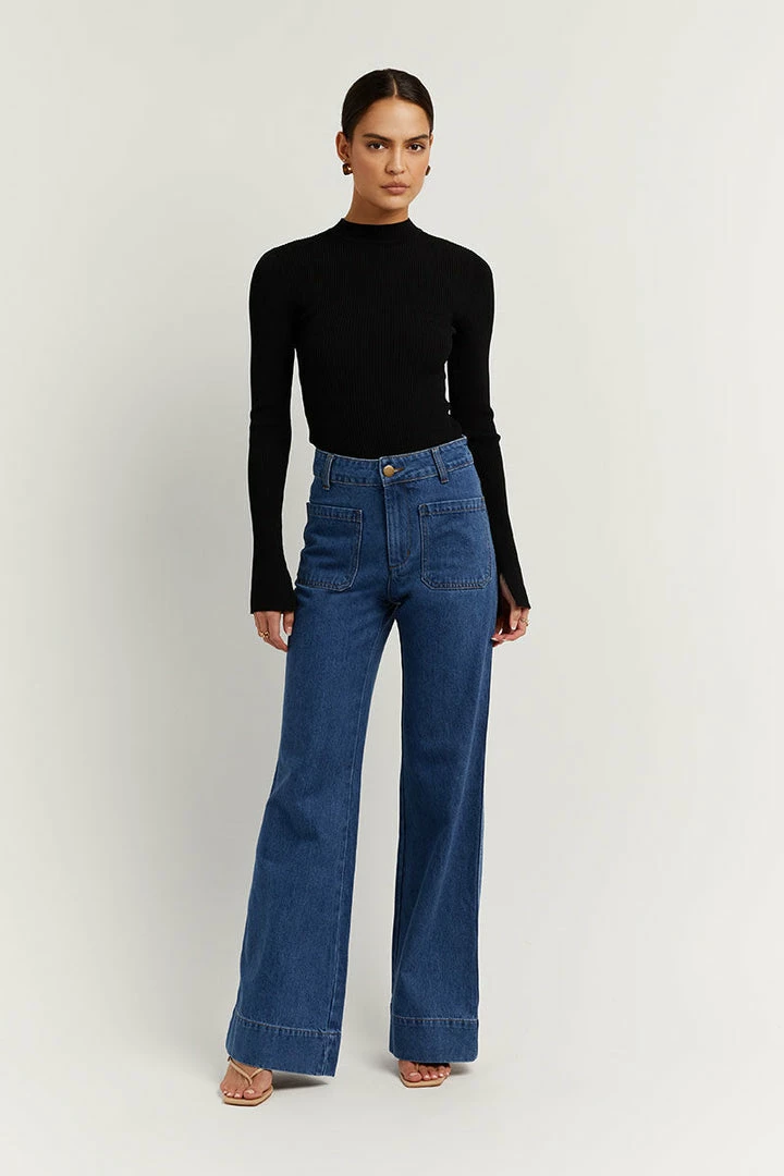 Best deal ๐ DISSH Boutiques CLOTHING PERI DARK BLUE WIDE LEG DENIM JEAN ๐