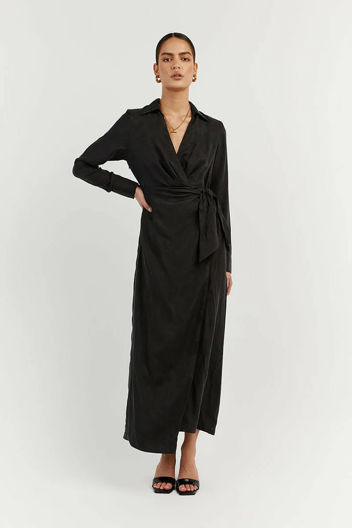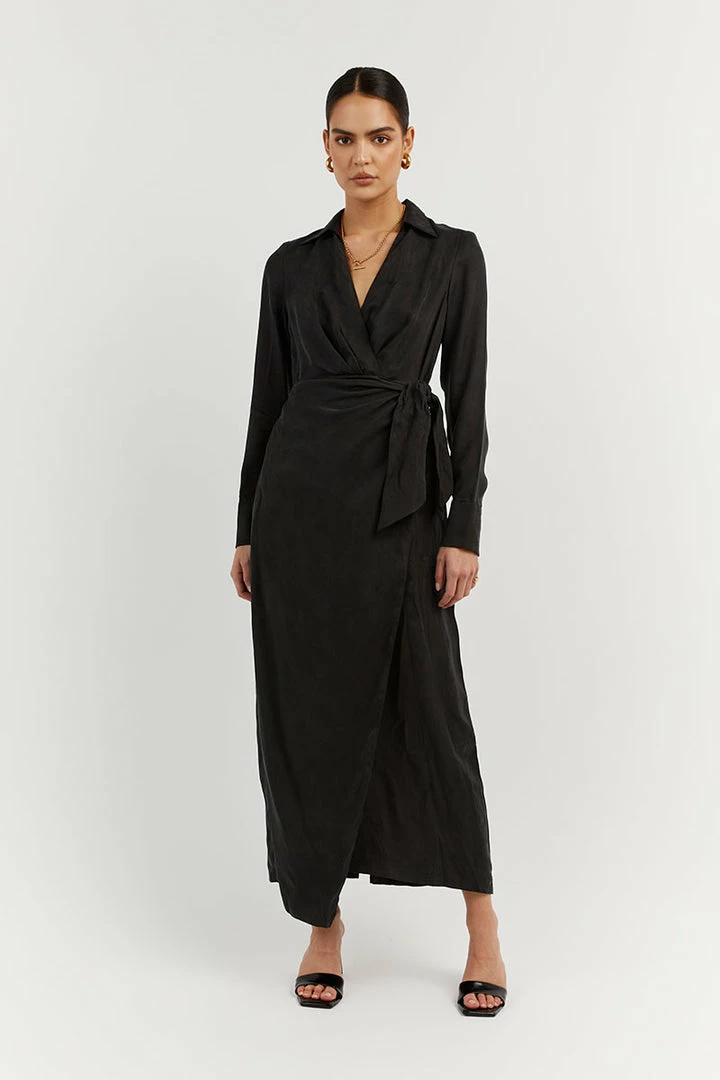 Outlet ๐ DISSH Boutiques CLOTHING SASHA BLACK WRAP MIDI ๐ DRESS ๐