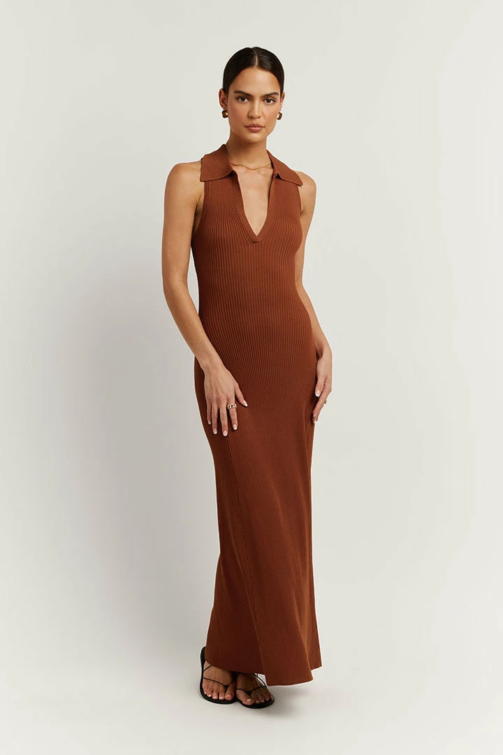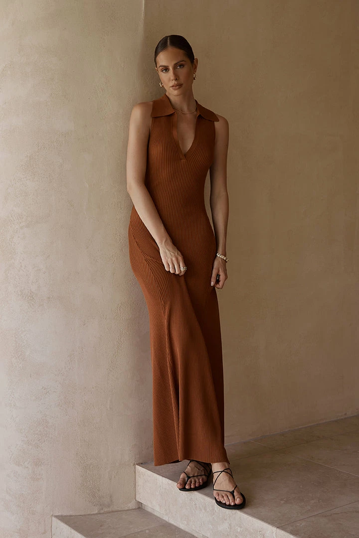 Wholesale ๐ DISSH Boutiques FENTON TAN COLLARED MIDI ๐ DRESS CLOTHING ๐งจ
