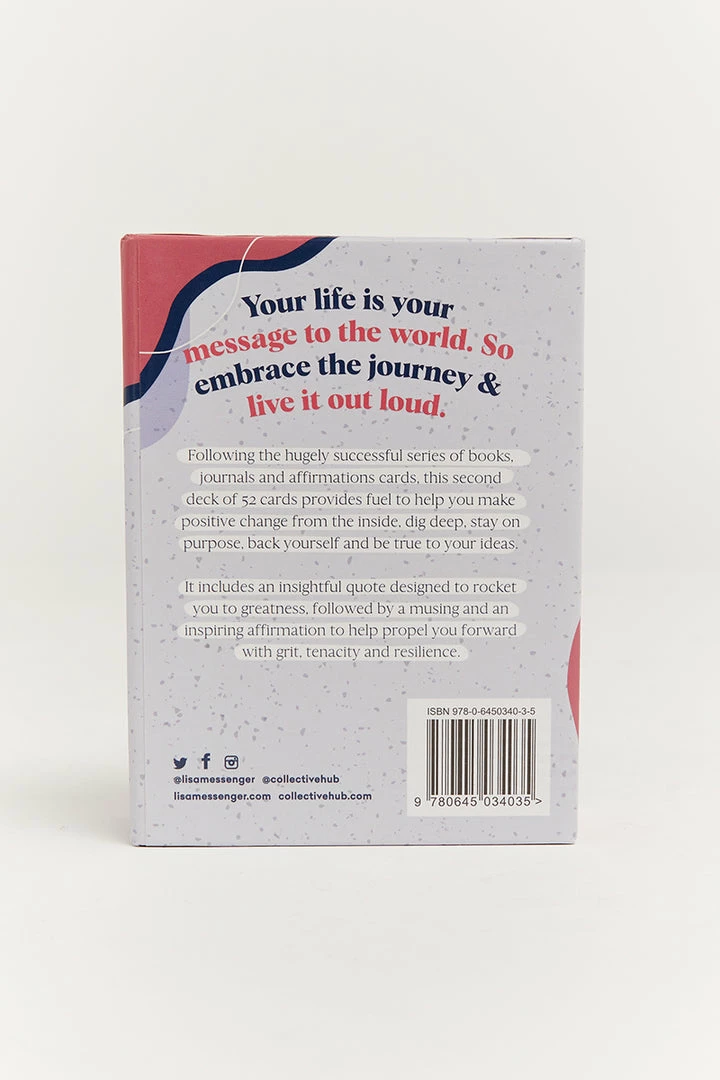 Following the hugely successful series of books, journals and affirmations cards, this second deck of 52 cards provides fuel to help you make positive change from the inside, dig deep, stay on purpose, back yourself and be true to your ideas. It includes an insightful quote designed to rocket you to greatness, followed by a musing and an inspiring affirmation to help propel you forward with grit, tenacity and resilience.