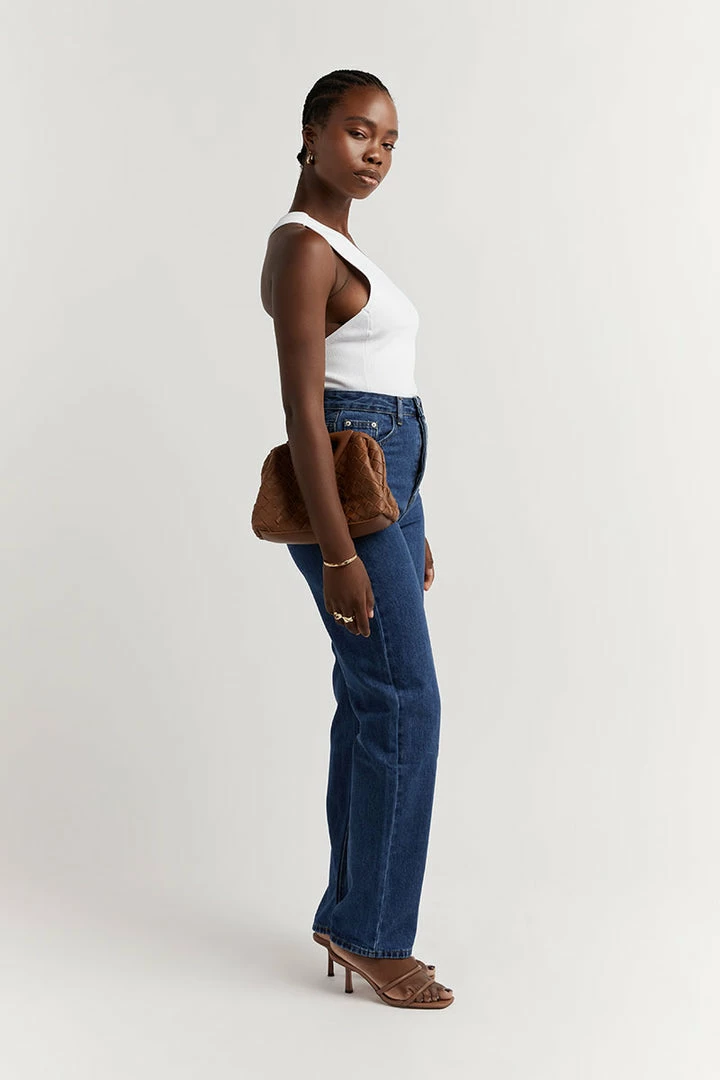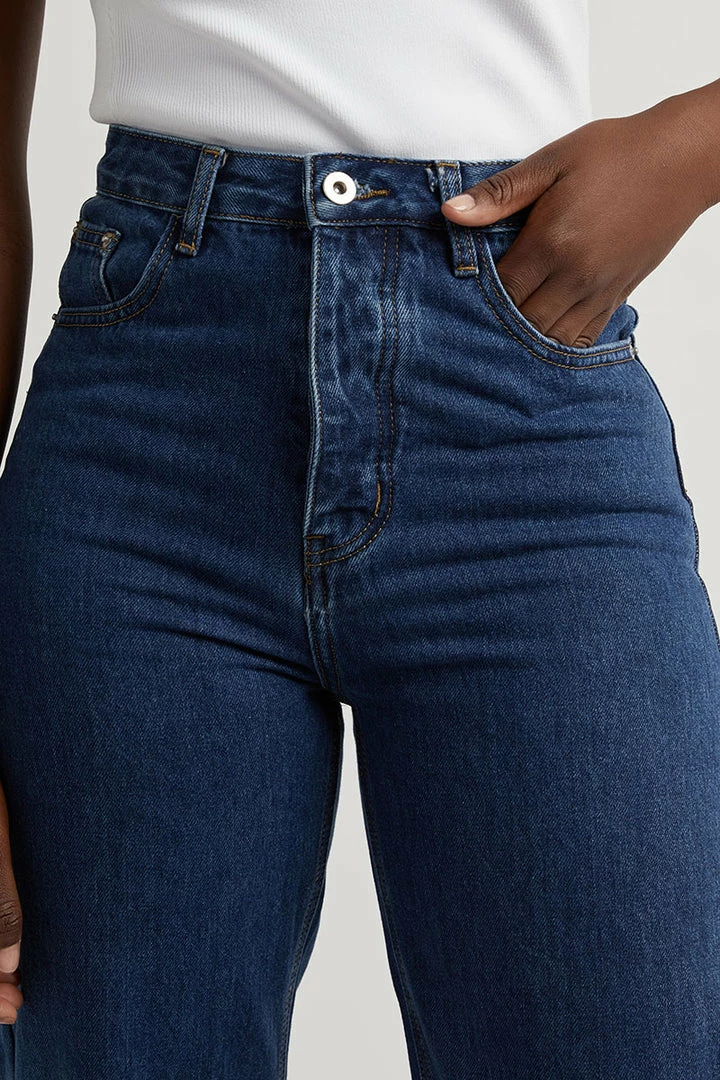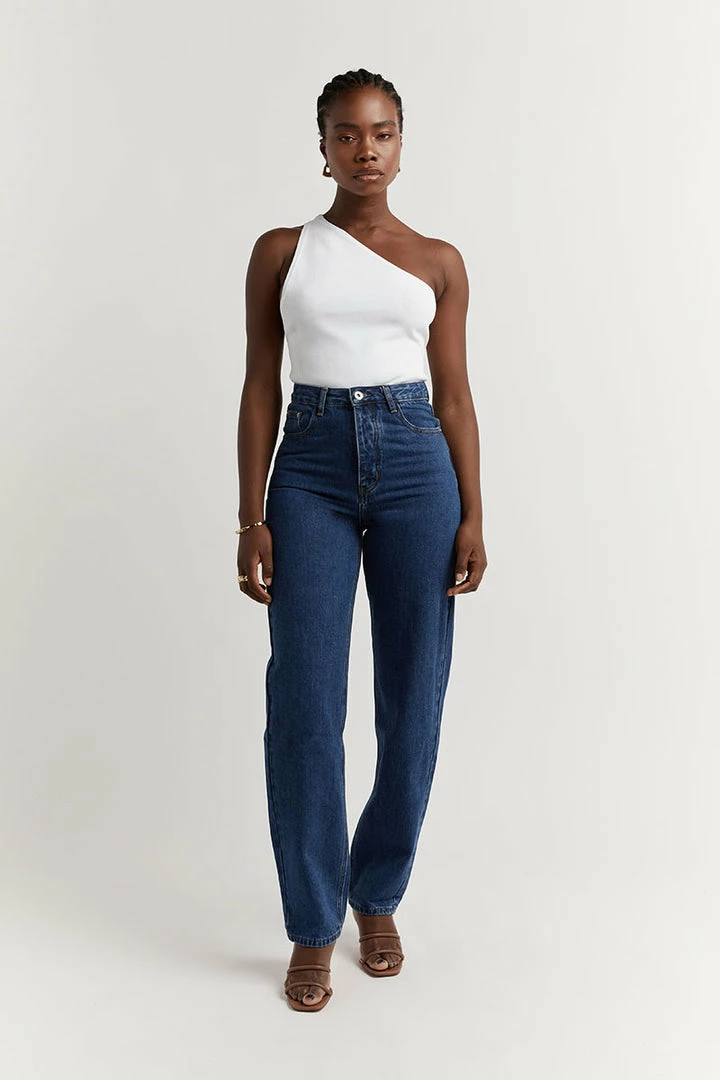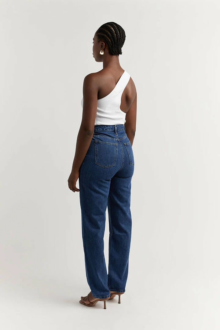 - High waist, straight leg denim jeans