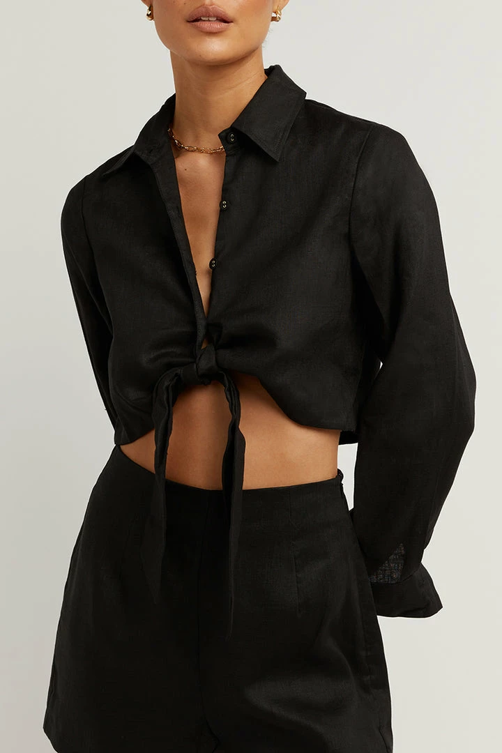 Wholesale โค๏ธ DISSH Boutiques JESSIE BLACK LINEN SHORT CLOTHING ๐ฏ