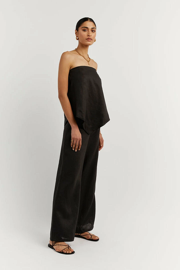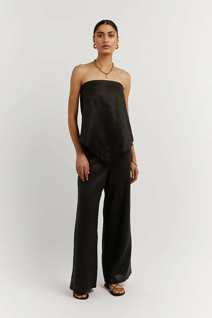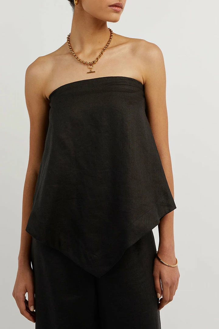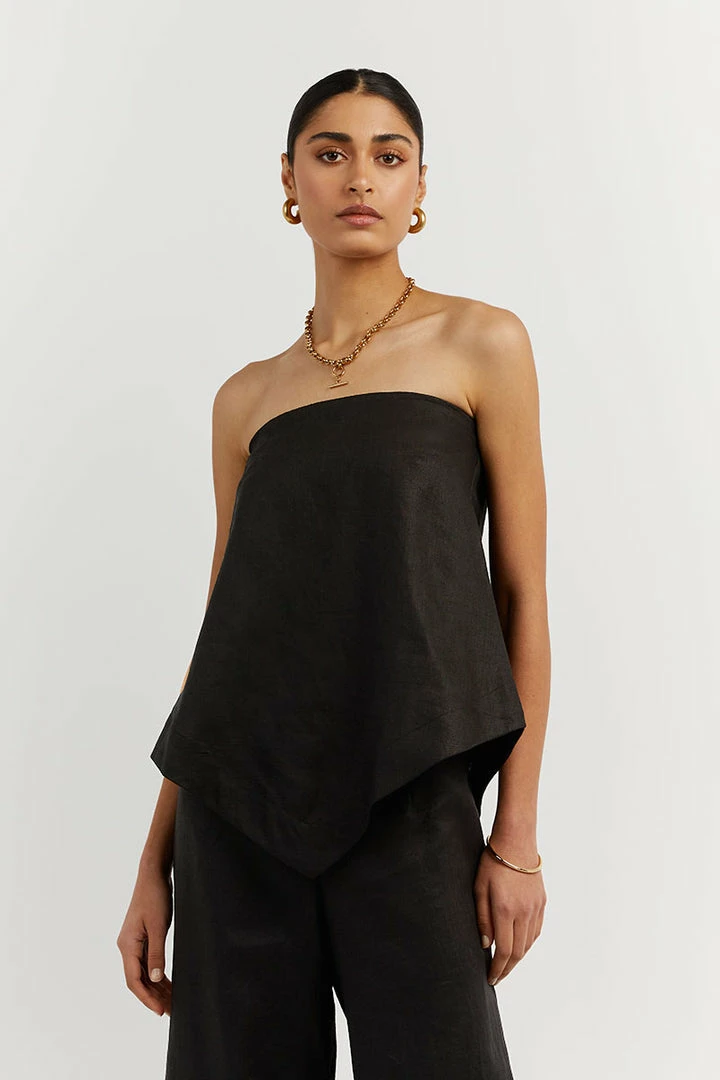 Wholesale ๐ DISSH Boutiques JESSIE BLACK LINEN STRAPLESS TOP CLOTHING ๐