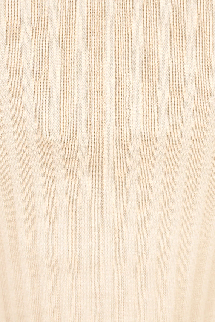 - Beige rib knit fabrication