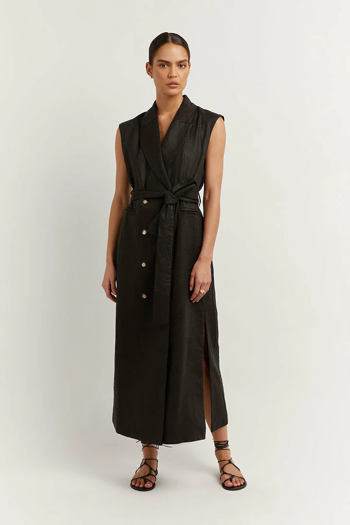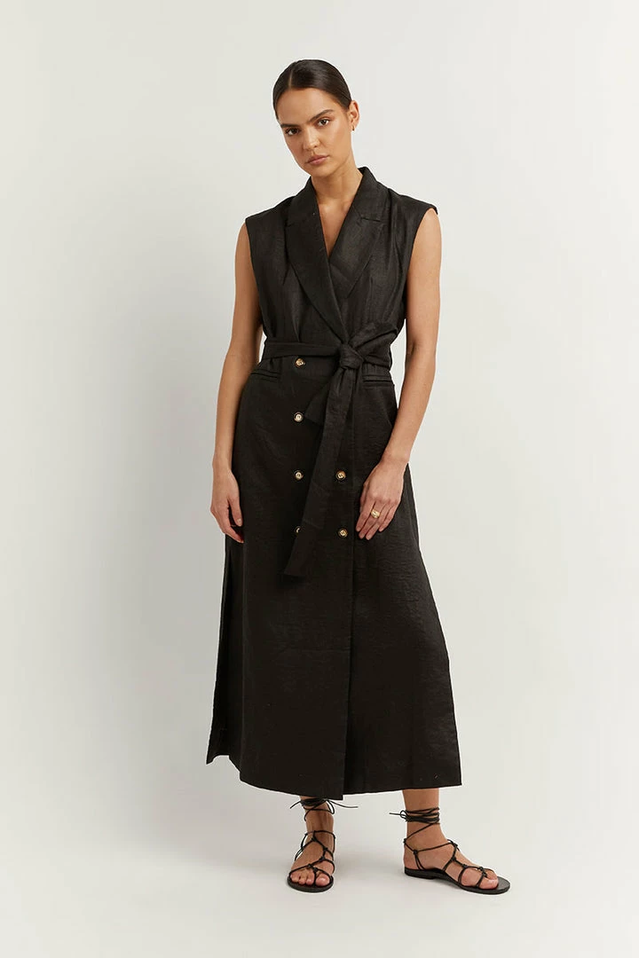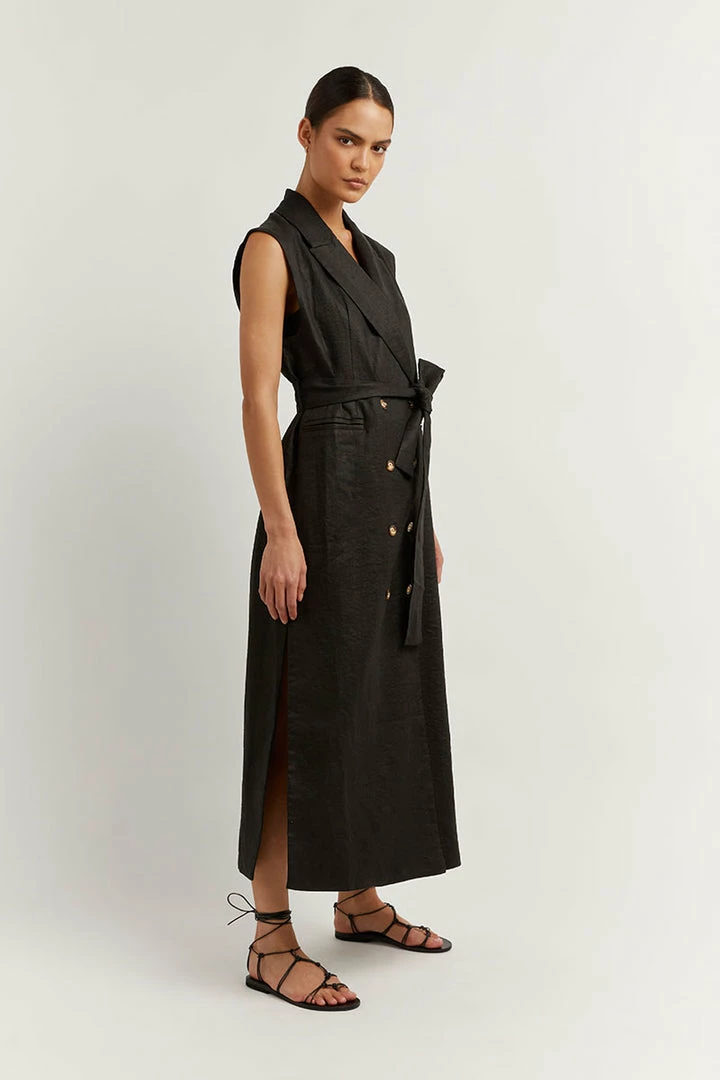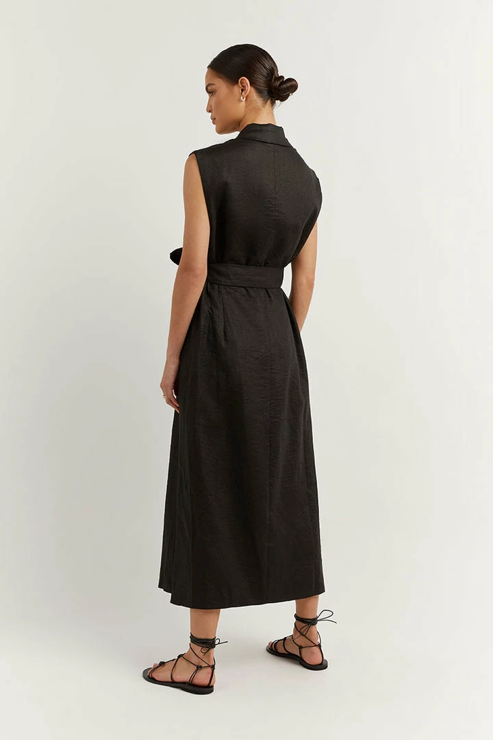New โจ DISSH Boutiques LOGAN BLACK LINEN MIDI ๐ DRESS โญ