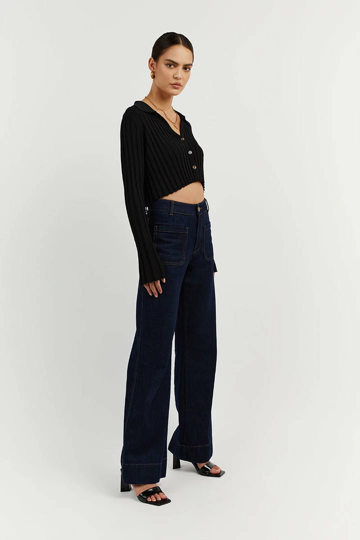 Best Pirce 🥰 DISSH Boutiques MAX BLACK BUTTON UP KNIT TOP CLOTHING ❤️
