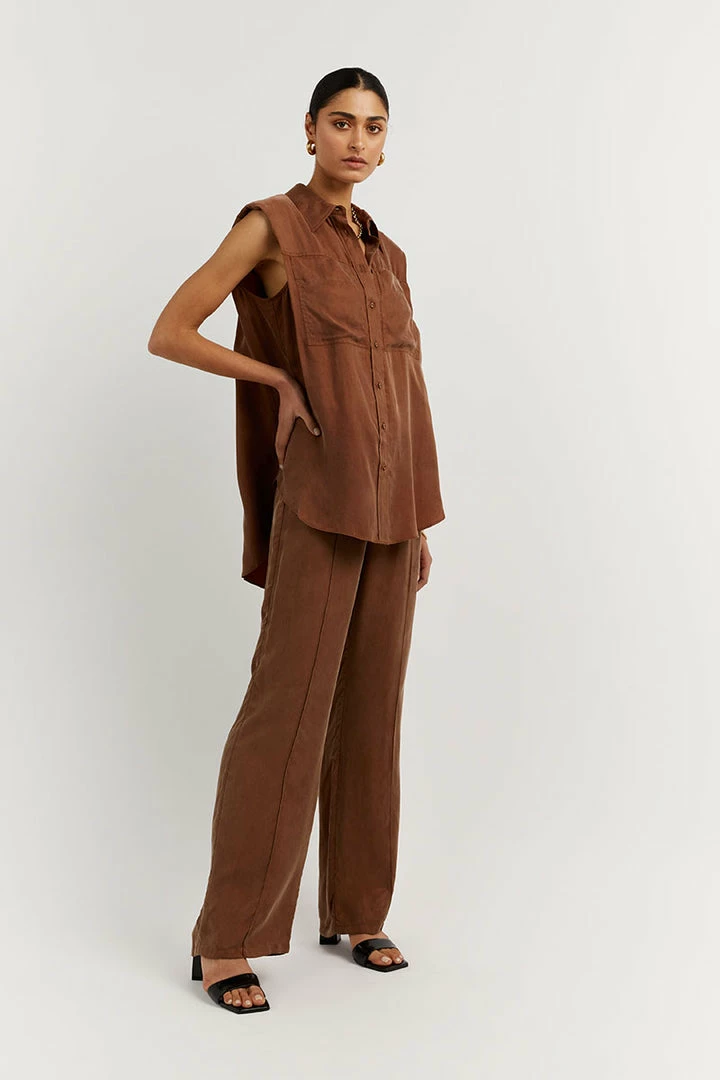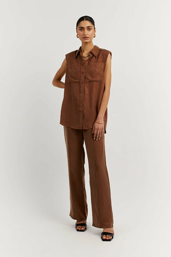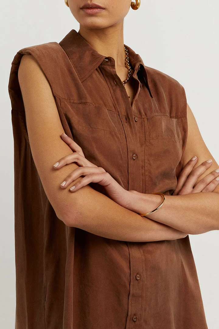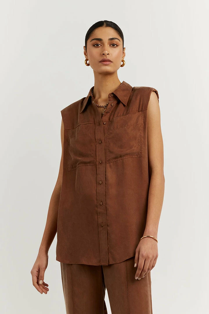 Best Pirce ๐ฅฐ DISSH Boutiques SASHA TAN CUPRO SLEEVELESS ๐ SHIRT ๐คฉ