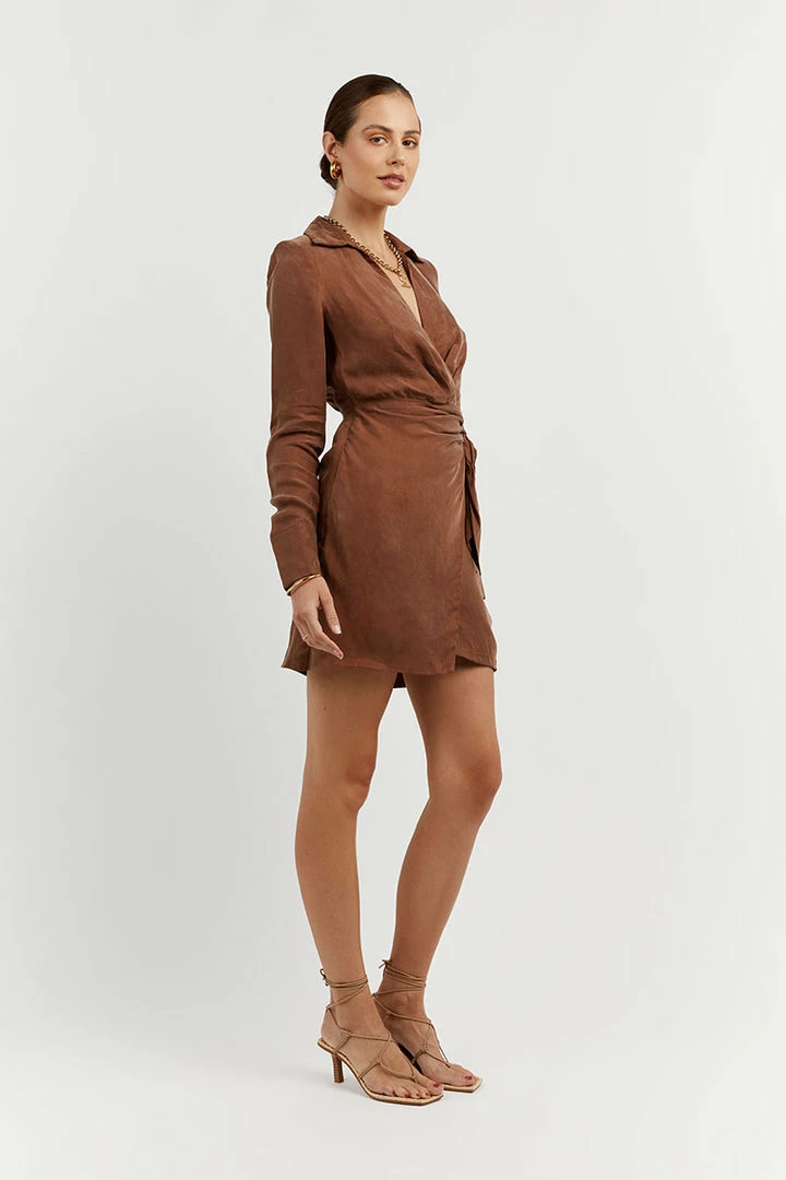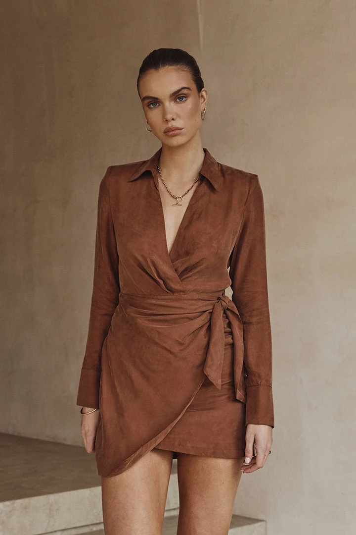 Budget ๐ DISSH Boutiques SASHA TAN WRAP MINI ๐ DRESS CLOTHING โ๏ธ