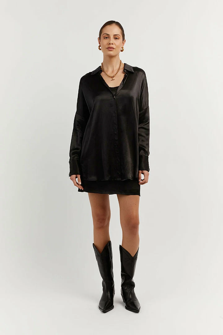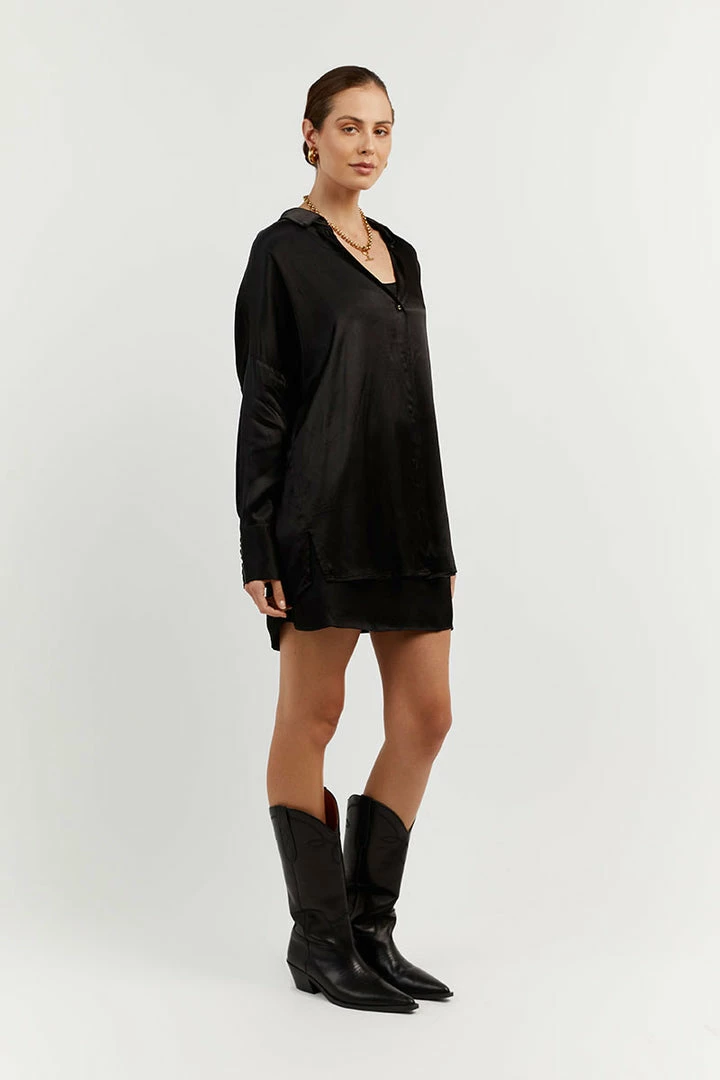 Promo ๐งจ DISSH Boutiques SIMONE BLACK SATIN MINI ๐ SKIRT ๐