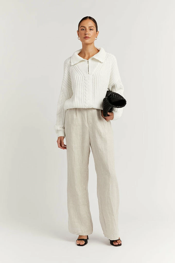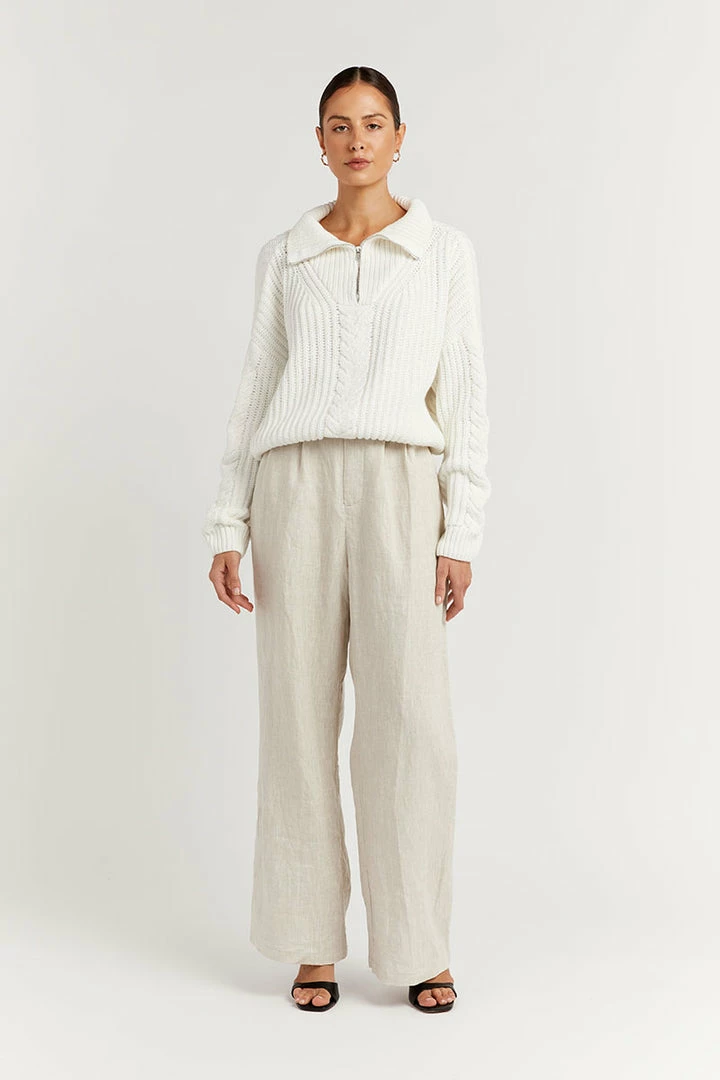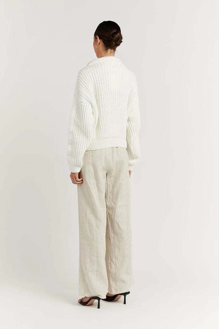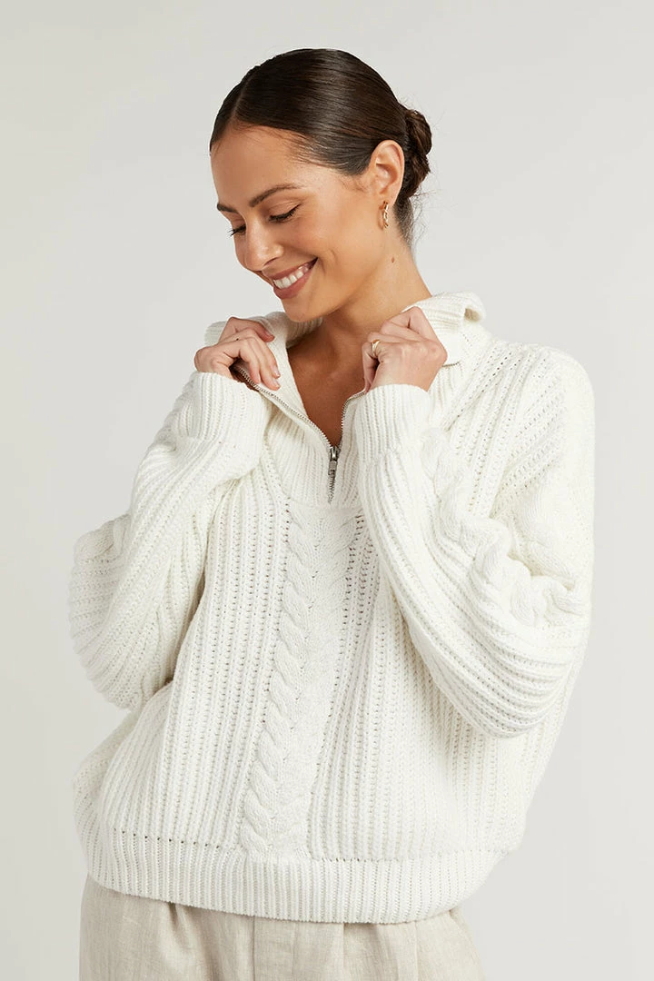Outlet โ๏ธ DISSH Boutiques SWEATERS BARNETT WHITE CABLE ZIP FRONT KNIT ๐