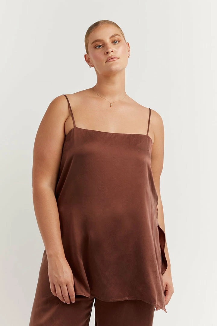 Buy ๐ฅ DISSH Boutiques THE BUMP FRIENDLY EDIT EVANS MAHOGANY SILK TUNIC TOP ๐ฅฐ