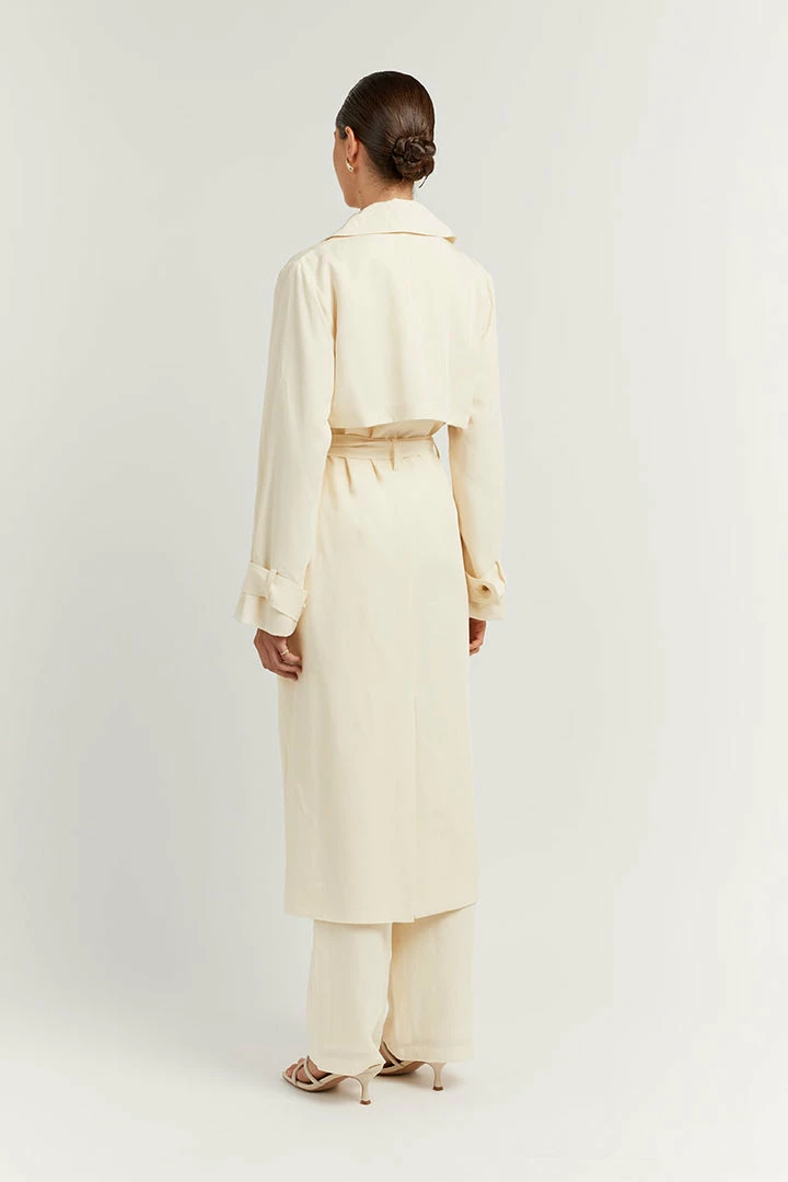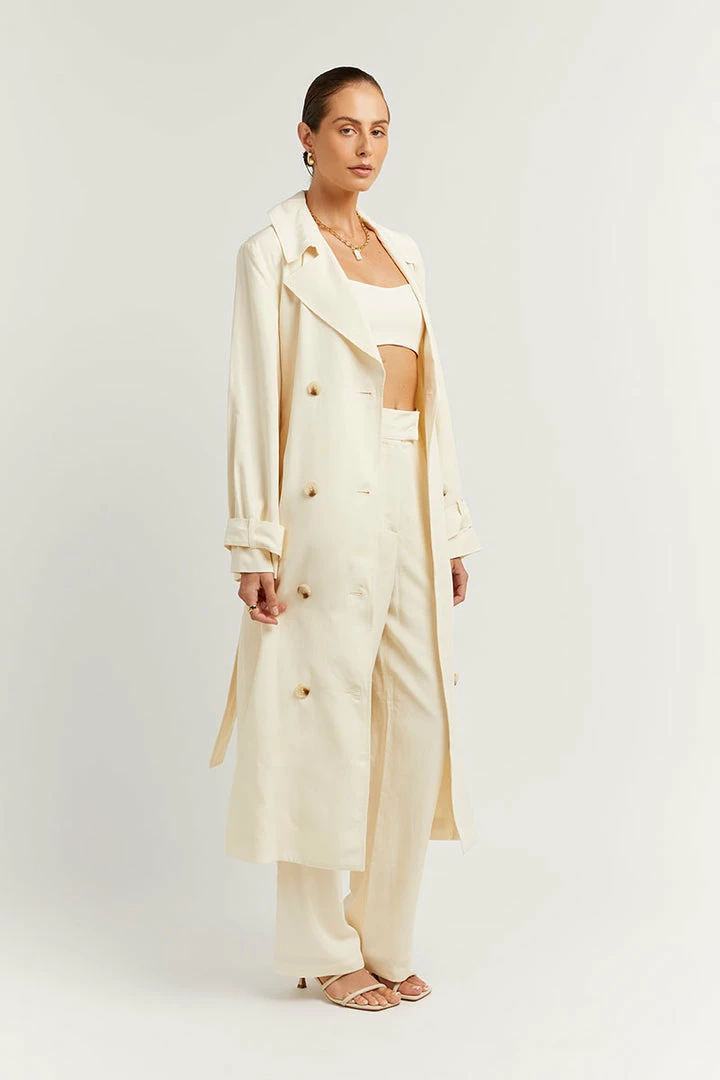Promo ๐ DISSH Boutiques THE BUMP FRIENDLY EDIT FALLON OFF WHITE LINEN BLEND TRENCH ๐