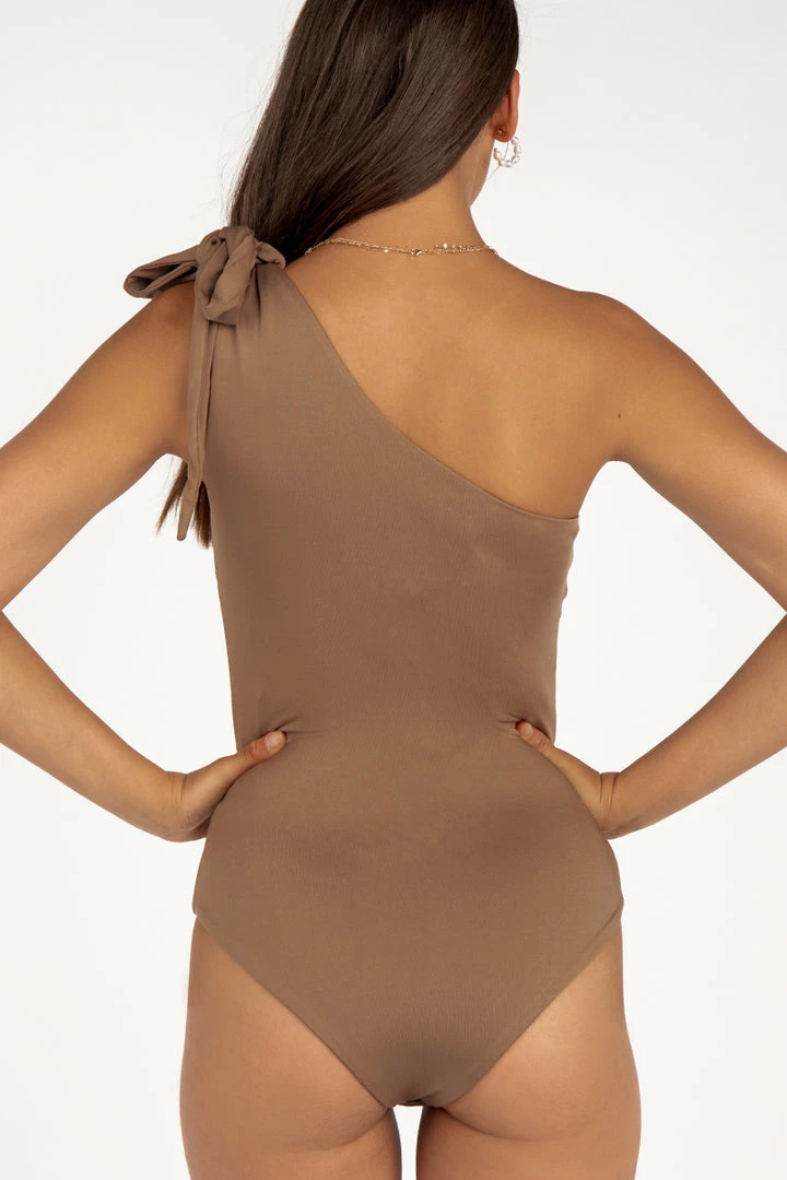 Slone Latte One Shoulder Bodysuit