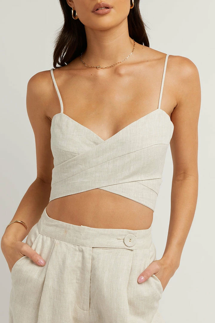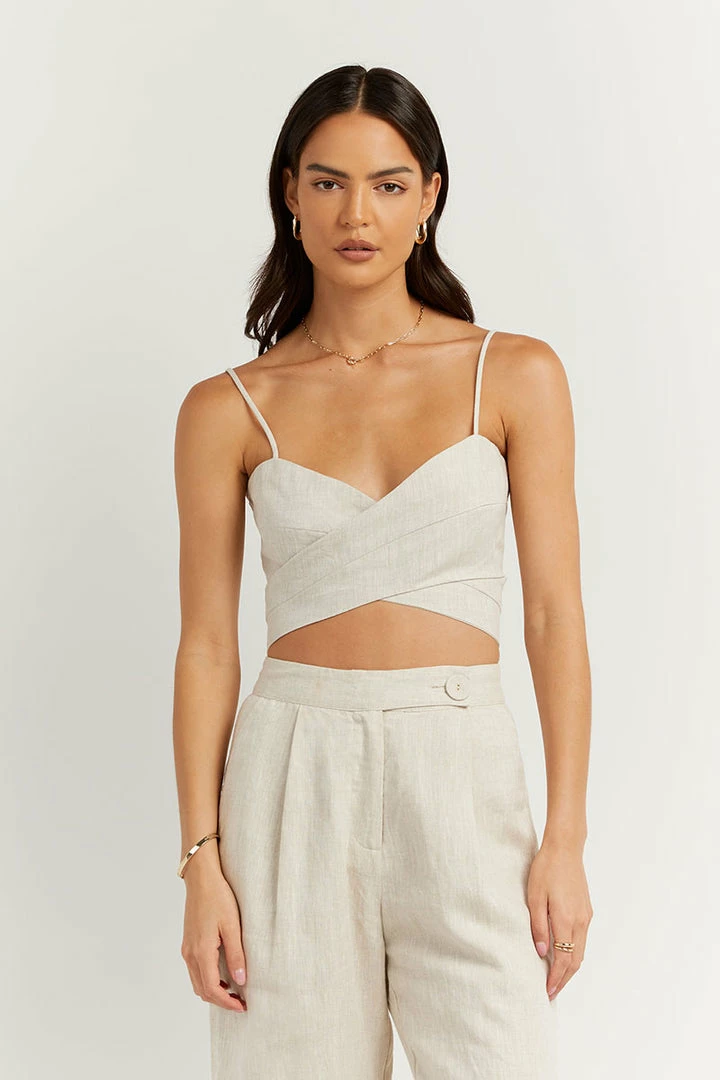 Coupon ๐ DISSH Boutiques ZUMA NATURAL LINEN WRAP CROP TOP CLOTHING ๐