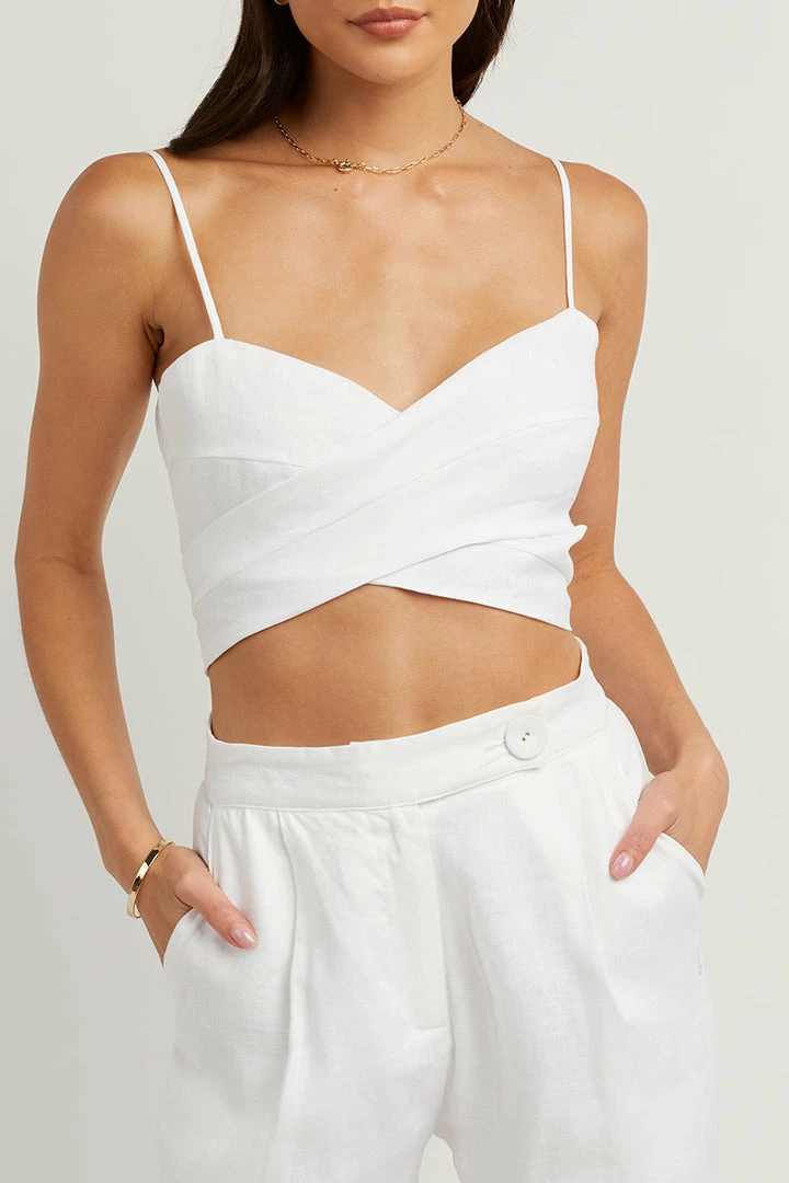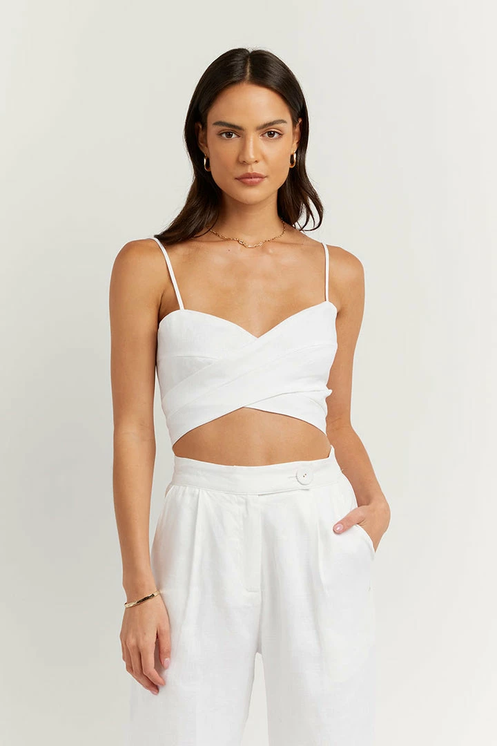 New ๐ DISSH Boutiques ZUMA WHITE LINEN WRAP CROP TOP ๐